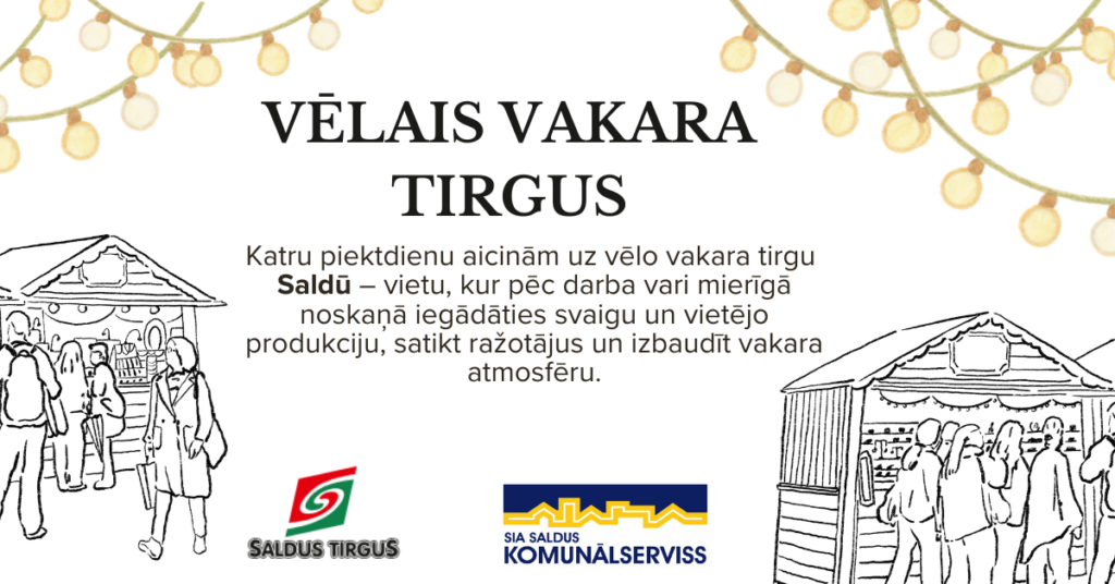 Katru piektdienu par nemainīgu vērtību Saldū ir kļuvis vakara tirgus – vieta, kur nesteidzīgā atmosfērā iespējams iepirkties pēc darba dienas. Vakara tirgus piedāvā iespēju mierīgā noskaņā iegādāties svaigu un vietējo produkciju, satikt ražotājus un izbaudīt patīkamu piektdienas vakara gaisotni. Tā ir iespēja sagatavoties brīvdienām bez steigas un rindām, izvēloties kvalitatīvus produktus no vietējiem tirgotājiem.